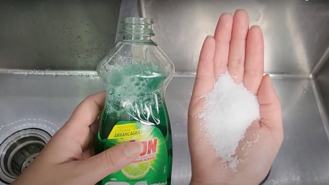 Mezcla detergente lavavajillas con sal y no te creerás los resultados